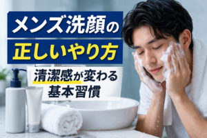 「洗顔は朝と夜どっちが大事?」「タイミングで違いはあるの?」 洗顔の回数だけでなく、タイミングも清潔感に大きく影響します。 この記事では、朝と夜それぞれの役割と、正しい洗顔のタイミングを分かりやすく解説します。 🧩 朝と […]