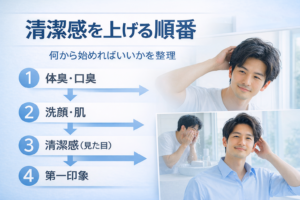 「清潔感を上げたいけど、何から始めればいいかわからない」そう感じている人は多いと思います。 実は、清潔感は“順番”を間違えると、うまく改善できません。 見た目だけ整えても、ニオイや肌が整っていなければ印象は下がります。逆 […]